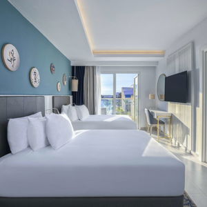 Camerele sunt dotate cu aer condiționat și sistem de încălzire, asigurând un confort optim. Majoritatea camerelor oferă vedere la mare de pe balcon sau terasă, iar pentru familii sunt disponibile camere de familie și paturi pentru copii. Fiecare cameră include un seif, minibar (contra cost), telefon, televizor și WiFi (contra cost). Băile sunt echipate cu duș, cadă și uscător de păr, oferind tot ce este necesar pentru o ședere plăcută.